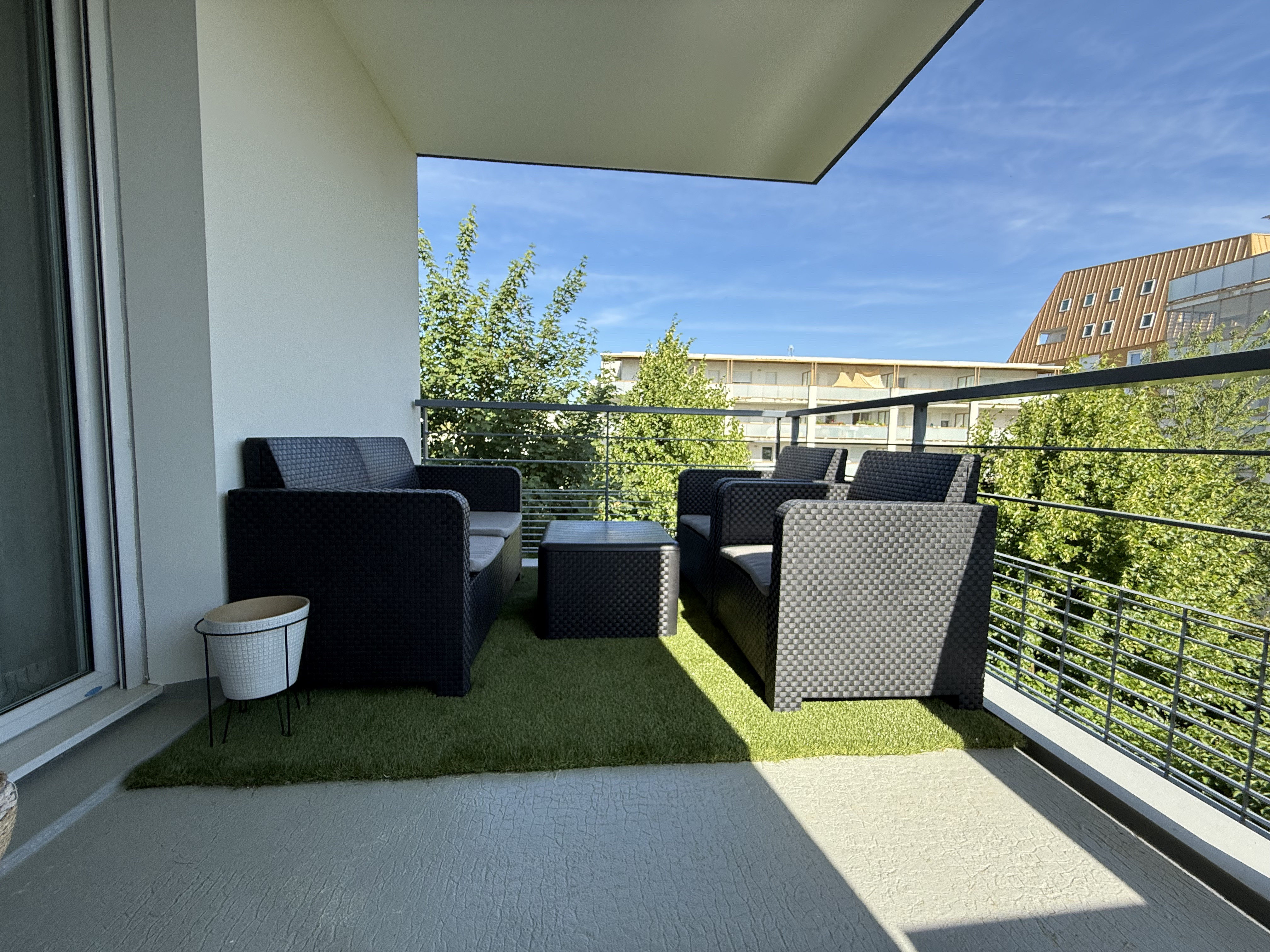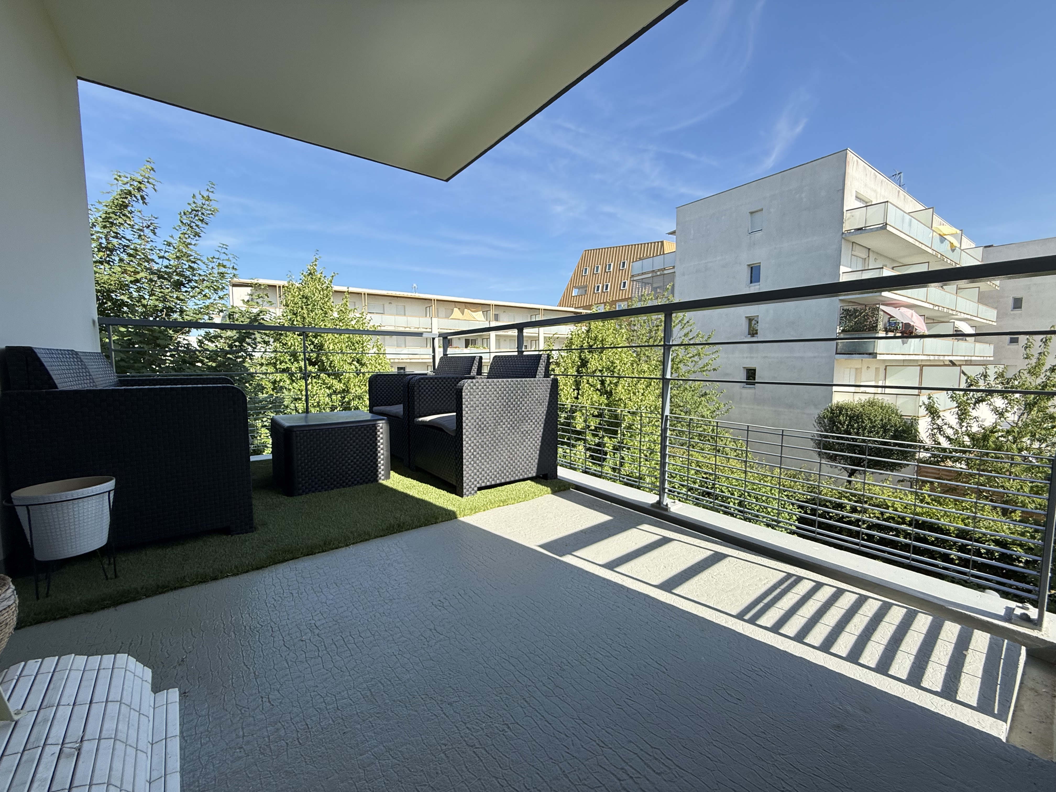 Terrasse exposée sud/est, sans vis-à-vis direct.
