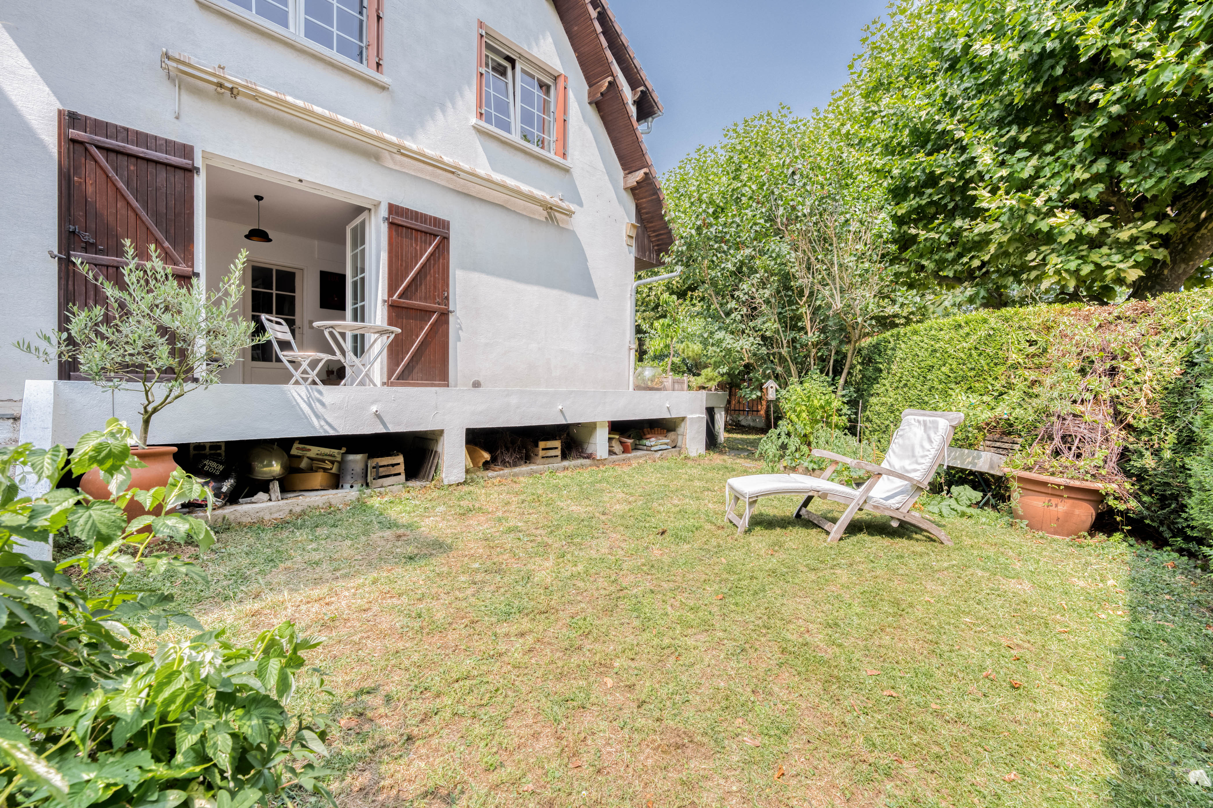 Au rez-de-chaussée, un séjour lumineux de 34 m² avec cheminée s'ouvre sur la terrasse et le jardin, idéal pour profiter des journées ensoleillées.