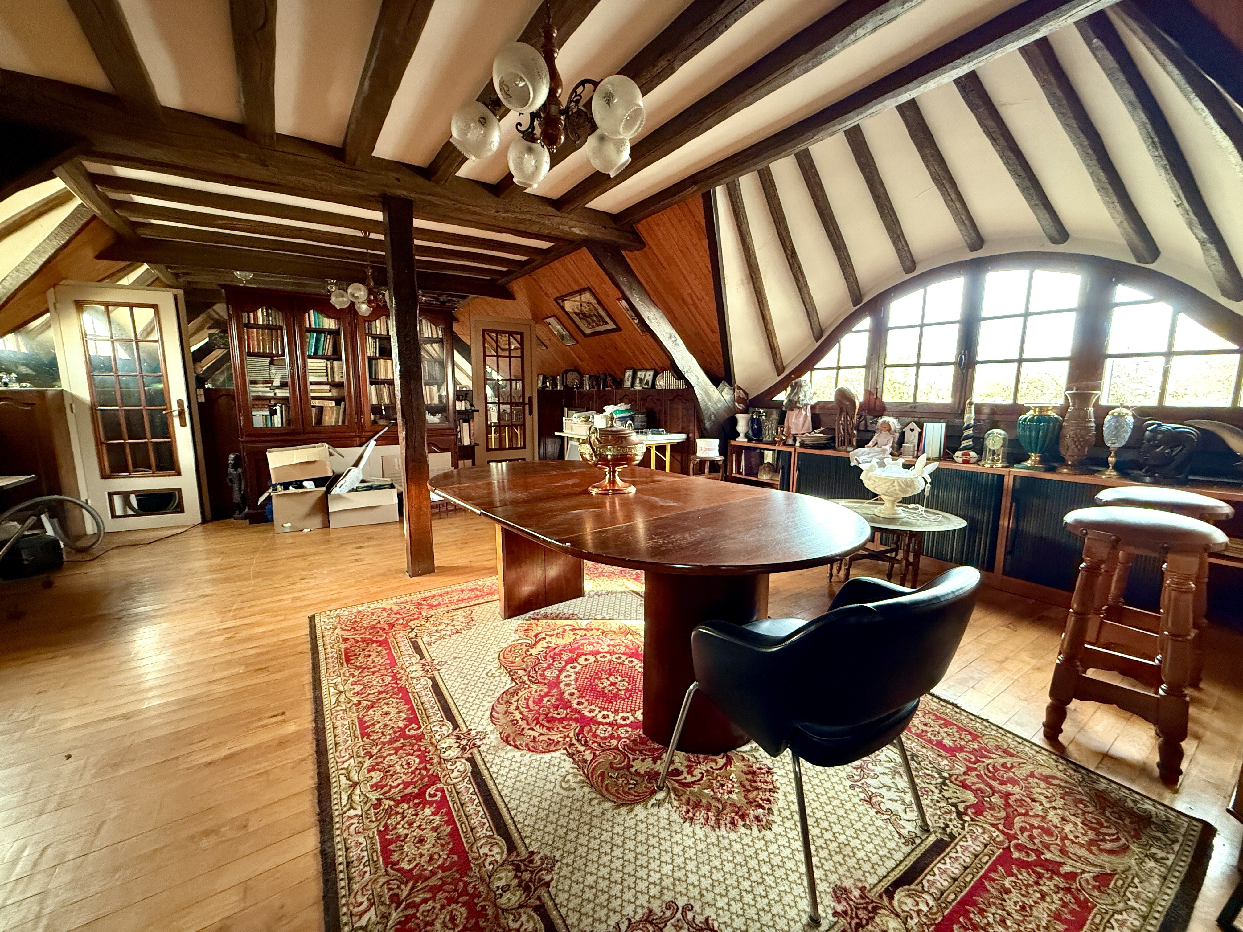 À l’étage, une grande pièce et plusieurs greniers offrent un important potentiel d’aménagement (chambres supplémentaires, bureau, salle de jeux).